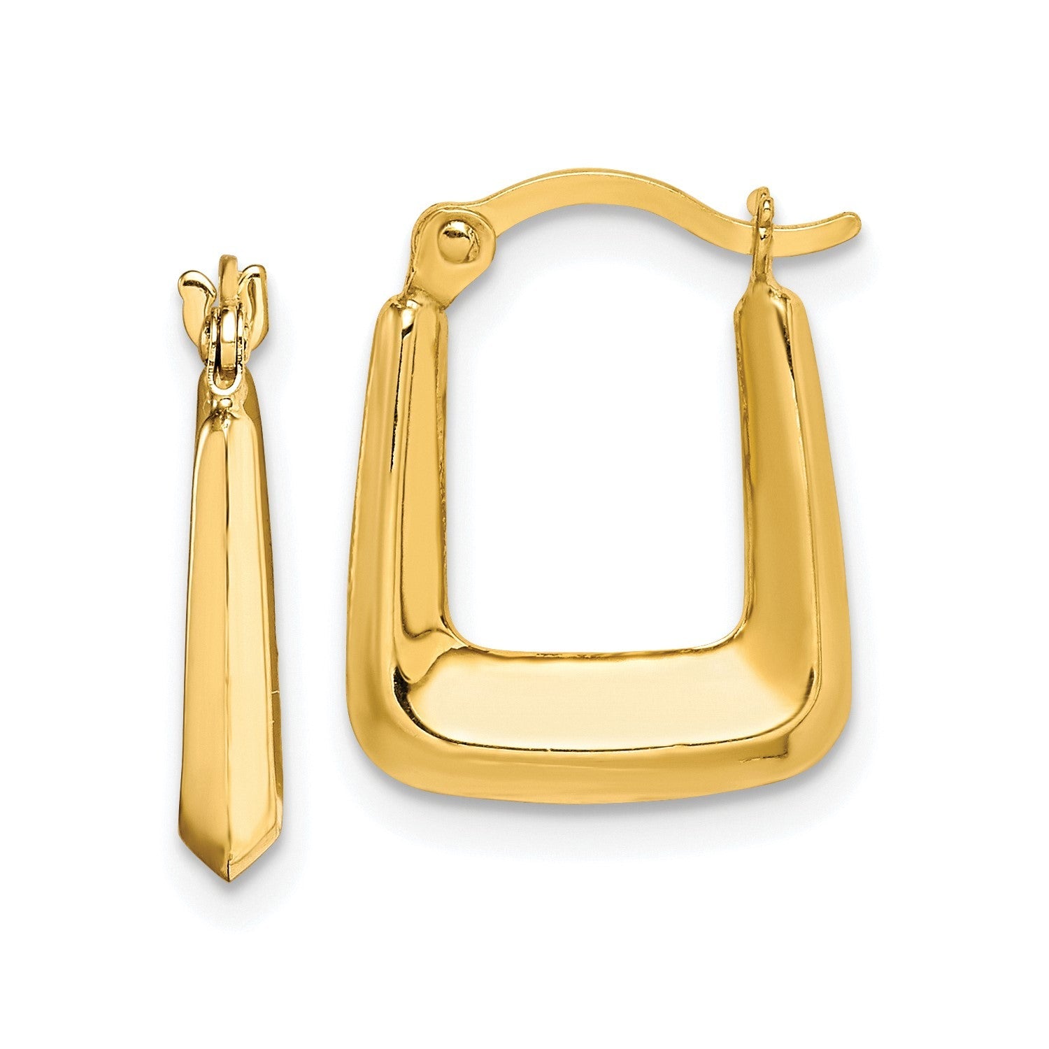 Elegant Design: These 10K yellow gold hollow squared hoop earrings feature a sleek, minimalist design measuring 15x12mm.