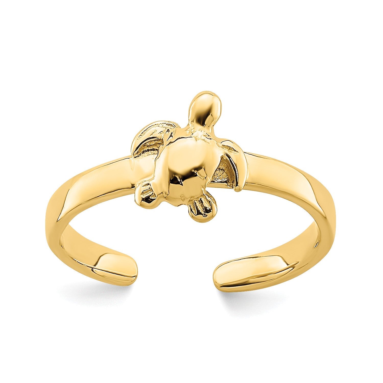 Embrace the beauty of the ocean with this exquisite 14k real solid yellow gold adjustable sea turtle toe ring. Crafted from the finest quality gold, this delicate piece of jewelry is a symbol of grace and elegance. The intricate design captures the essence of the beloved sea turtle, a creature known for its longevity and resilience. Slip this adjustable toe ring onto your foot and let it become a constant reminder of your love for the natural world and the wonders of the deep blue sea. Whether you're lounging on the beach or attending a formal event, this 14k yellow gold toe ring will add a touch of sophistication and charm to your look. With its durable construction and timeless appeal, this sea turtle toe ring is a treasure that will be cherished for years to come. Embrace the beauty of the ocean and let this stunning piece of jewelry transport you to the tranquil depths of the sea.
