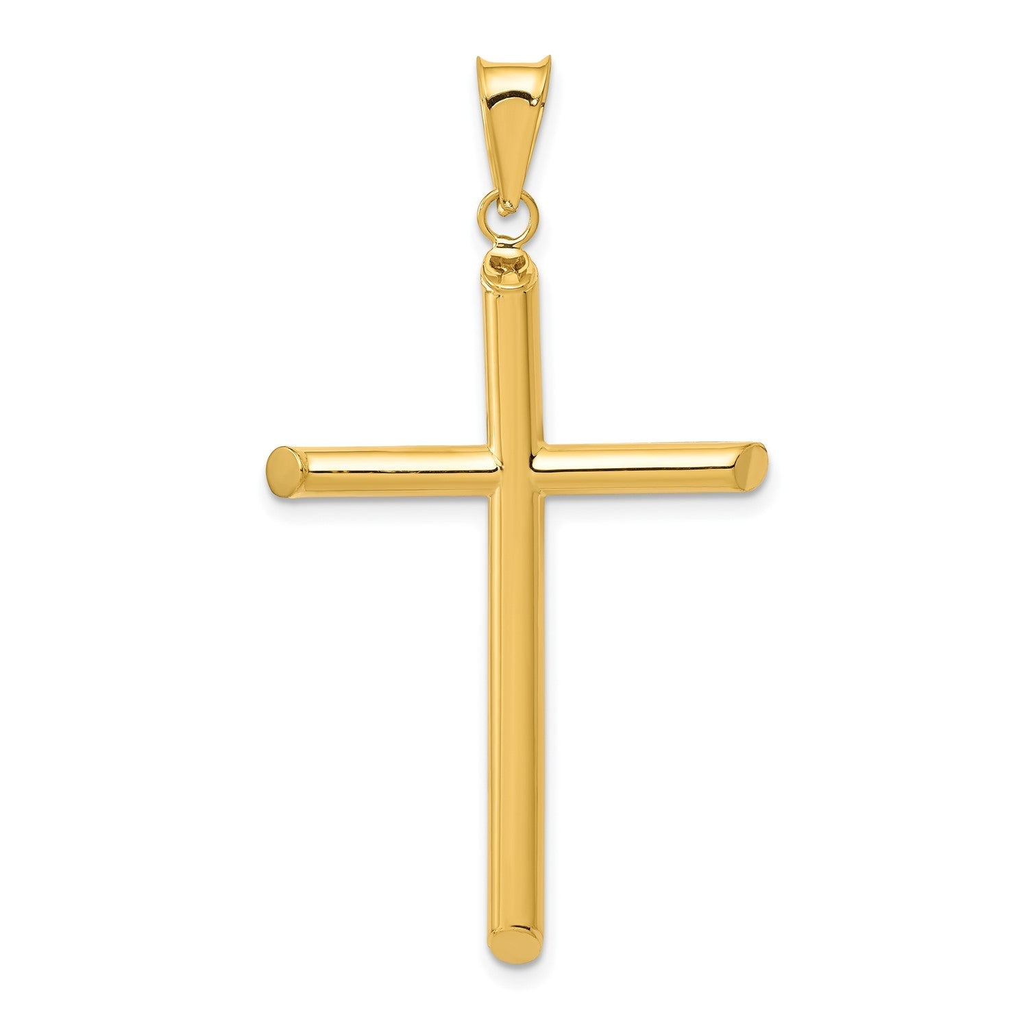 14k Real Yellow Gold 3-D Polished Hollow Cross Pendant, 45x25mm