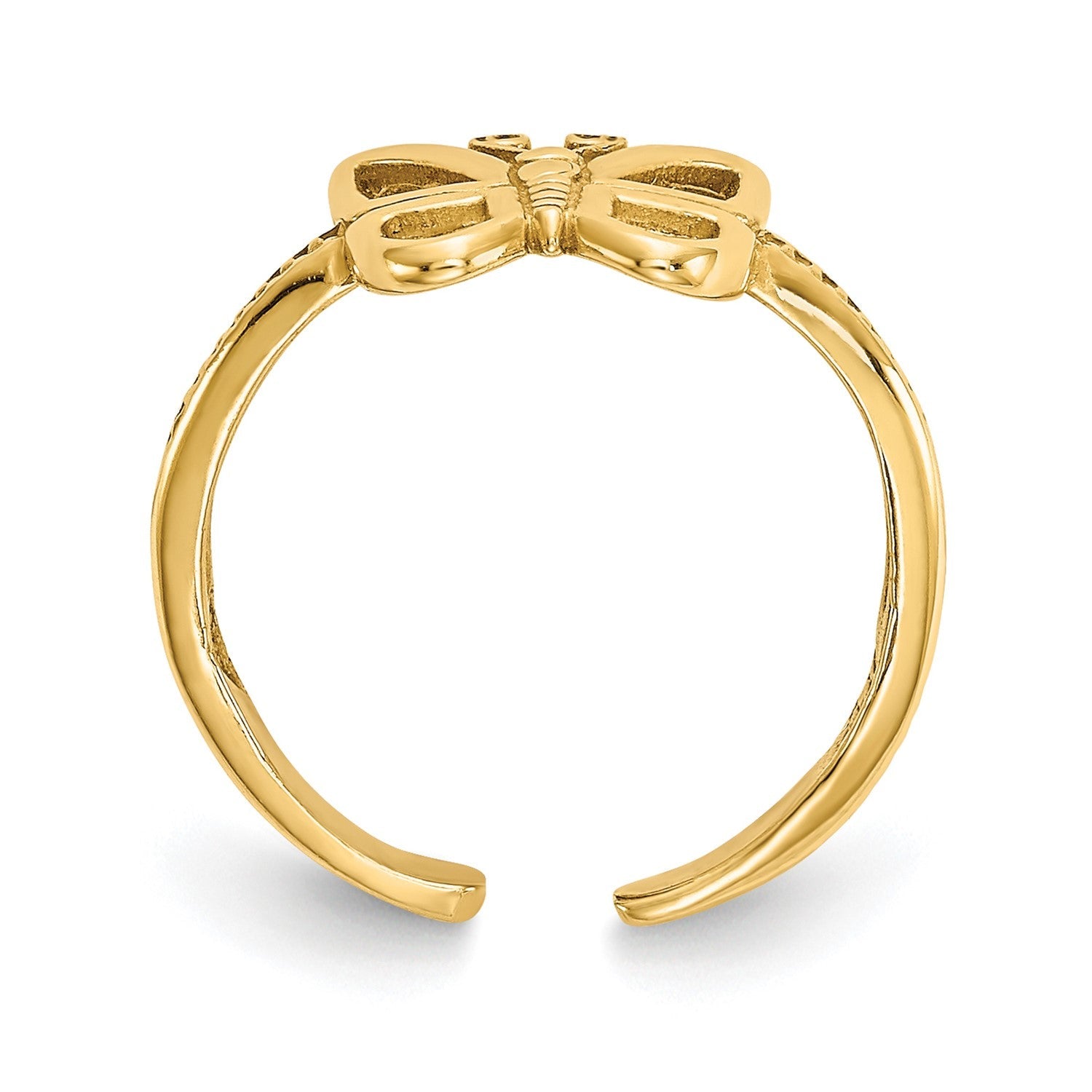 Elevate your summer style with this exquisite 14k real yellow solid gold butterfly toe ring. Crafted from high-quality 14K yellow gold, this delicate piece is a true symbol of elegance and beauty. The intricate butterfly design adds a whimsical touch to your look, making it a perfect accessory for any occasion. Whether you're lounging by the pool or strolling along the beach, this toe ring will undoubtedly turn heads. Treat yourself or surprise a loved one with this stunning piece of jewelry that will surely become a cherished addition to any collection. Embrace the warmth of summer and let the butterfly take flight on your feet.