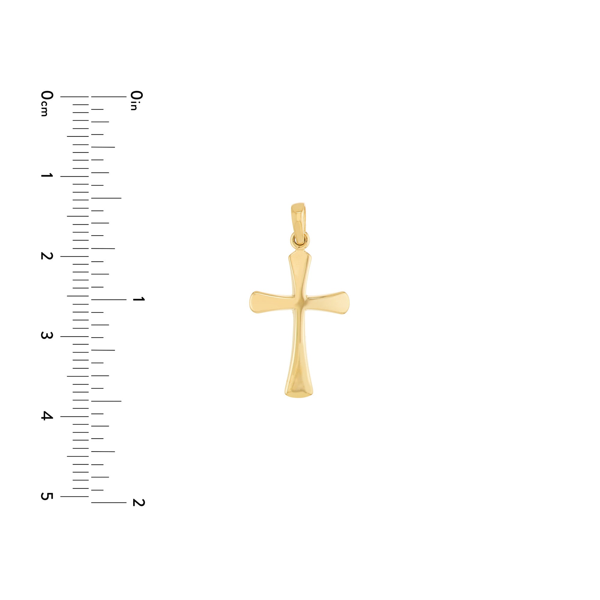 ELEGANT DESIGN: Classic cross pendant crafted in lustrous 14K yellow gold featuring gracefully flared edges for a contemporary look. The weight of the cross is at 10.5 grams