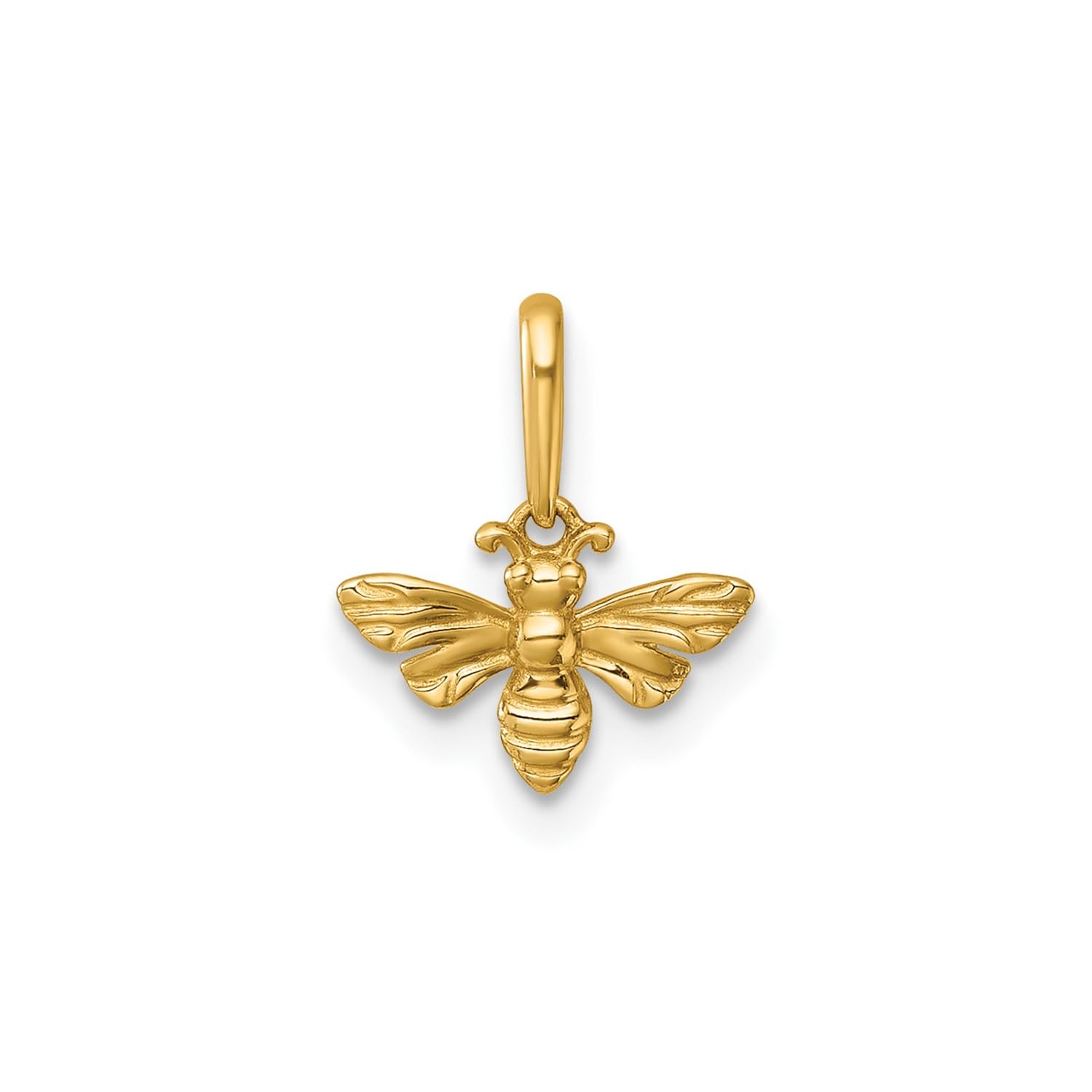 Elevate your style with this exquisite 14k yellow gold bee pendant. Meticulously crafted with a high-polish finish, this delicate charm captures the intricate beauty of nature's hardest worker. Measuring 12x10mm, this bee pendant is a versatile accessory that can be worn on a necklace or bracelet. Its timeless design and premium quality make it a cherished addition to any jewelry collection. Whether you're seeking a meaningful gift or a personal indulgence,