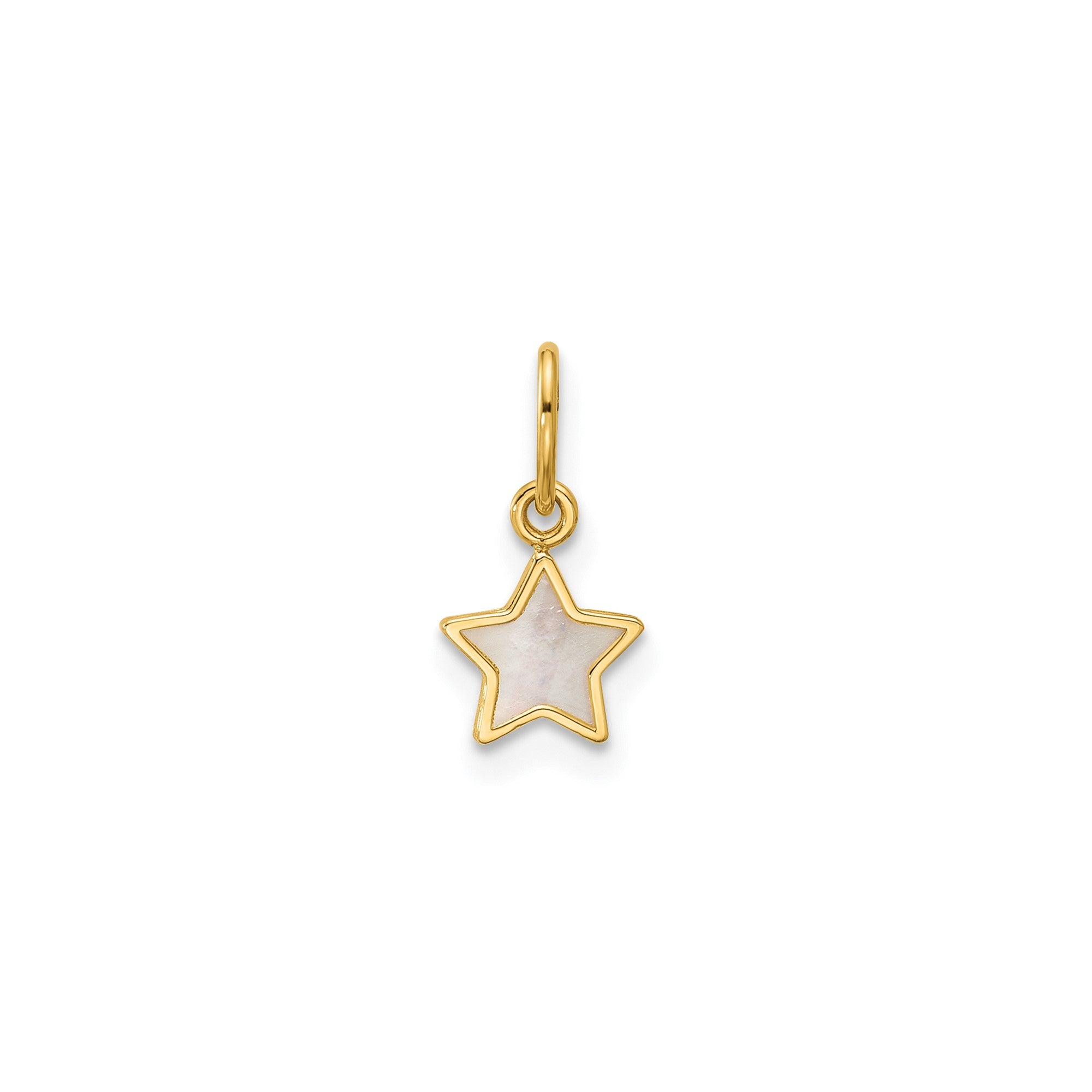 Elevate your medical identification with this sophisticated 14K yellow gold pendant. Crafted with precision in the USA, this rectangular pendant measures 13x7mm and weighs 0.23 grams, offering a minimal yet meaningful design. The pendant features a mother of pearl star motif, making it a distinctive piece for medical alert purposes while maintaining an elegant appearance. Perfect for everyday wear, this unisex piece combines functionality with refined style. The pendant's substantial 14K gold construction (585) ensures durability and lasting value. Whether worn alone or as part of your medical identification jewelry collection, this piece serves both practical and aesthetic purposes. The versatile design makes it suitable for various medical alert needs while maintaining a sophisticated appearance that coordinates with any attire.