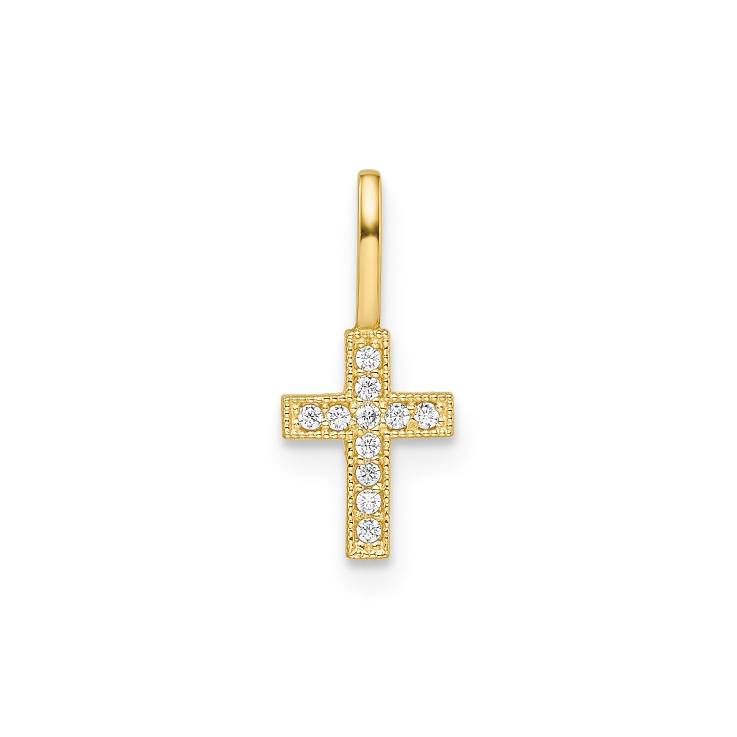 Elevate your style with this exquisite 14k yellow real gold CZ stone cross pendant. Measuring 8x6mm (approximately 0.31x0.24 inches), this elegant piece features a sparkling cubic zirconia stone that catches the light beautifully. The rich yellow gold hue adds a touch of warmth and luxury, making it a timeless accessory for any occasion. Whether you're dressing up for a special event or adding a touch of sophistication to your everyday look, this cross pendant is sure to become a cherished addition to your jewelry collection. Crafted with precision and attention to detail, it's a symbol of faith and style that you'll treasure for years to come.